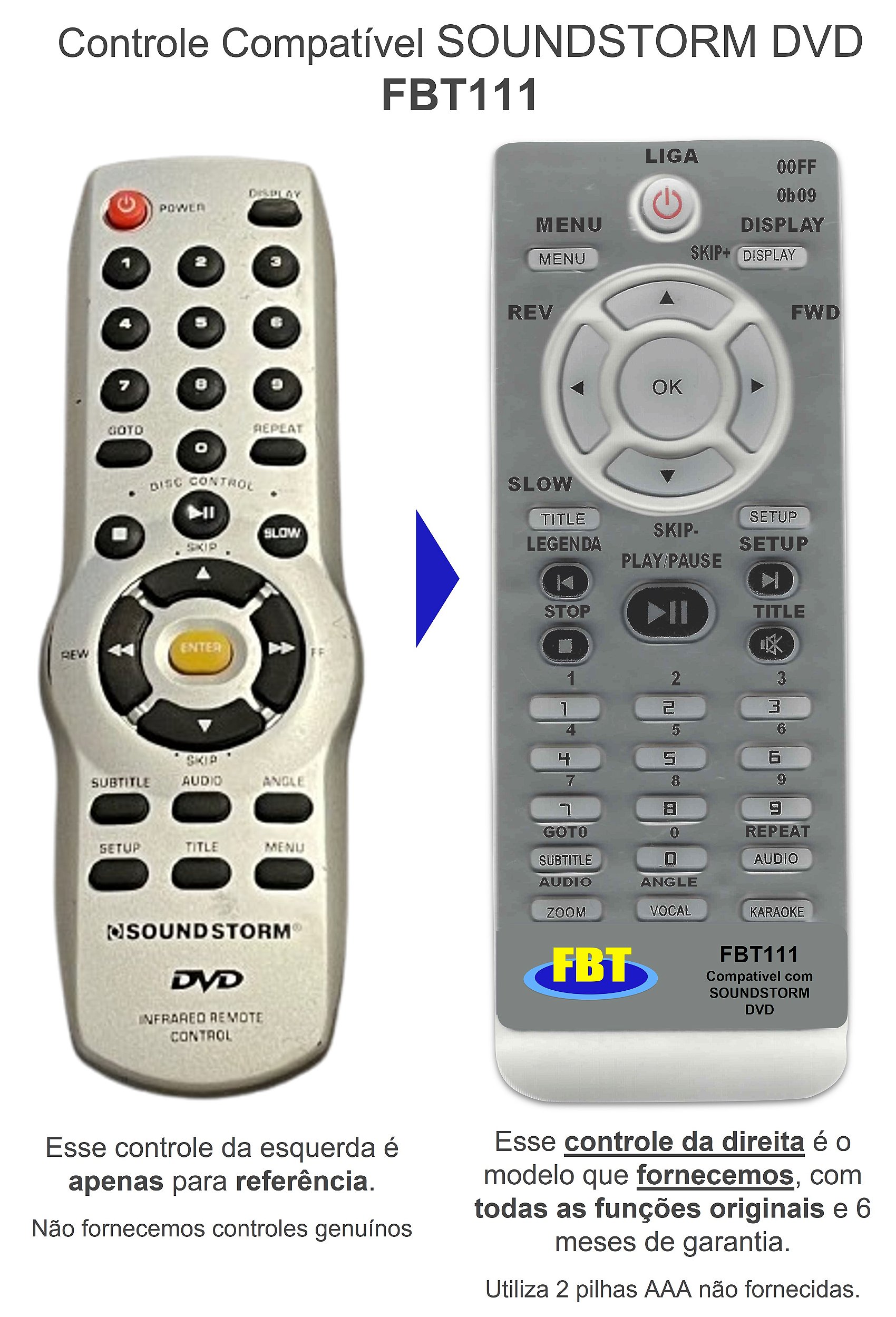 Fornecemos apenas o controle compatível (controle remoto que está a direita da imagem).