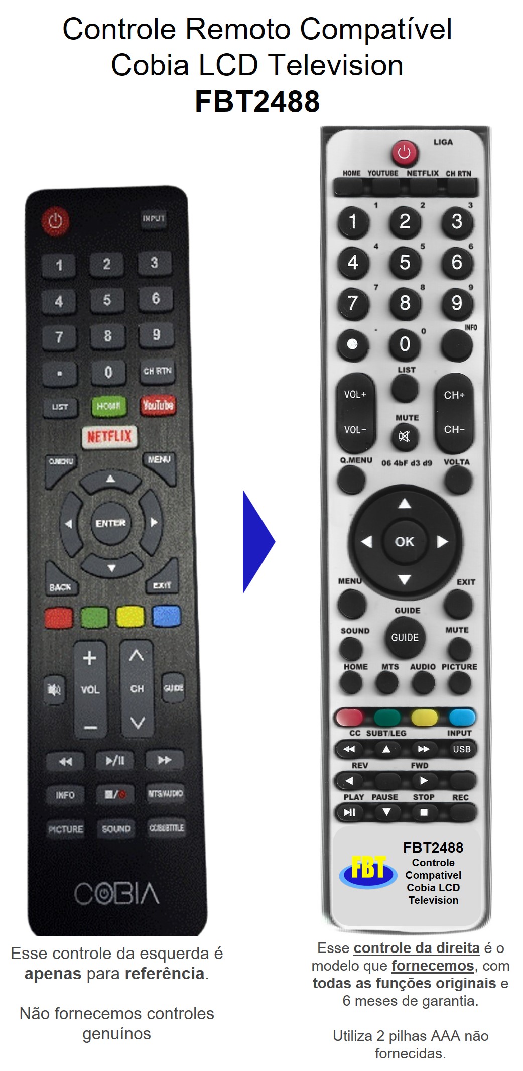 Nós vendemos e produzimos os Controles remotos compatíveis com visual diferente, totalmente funcional e com 6 meses de garantia e reposição permanente.