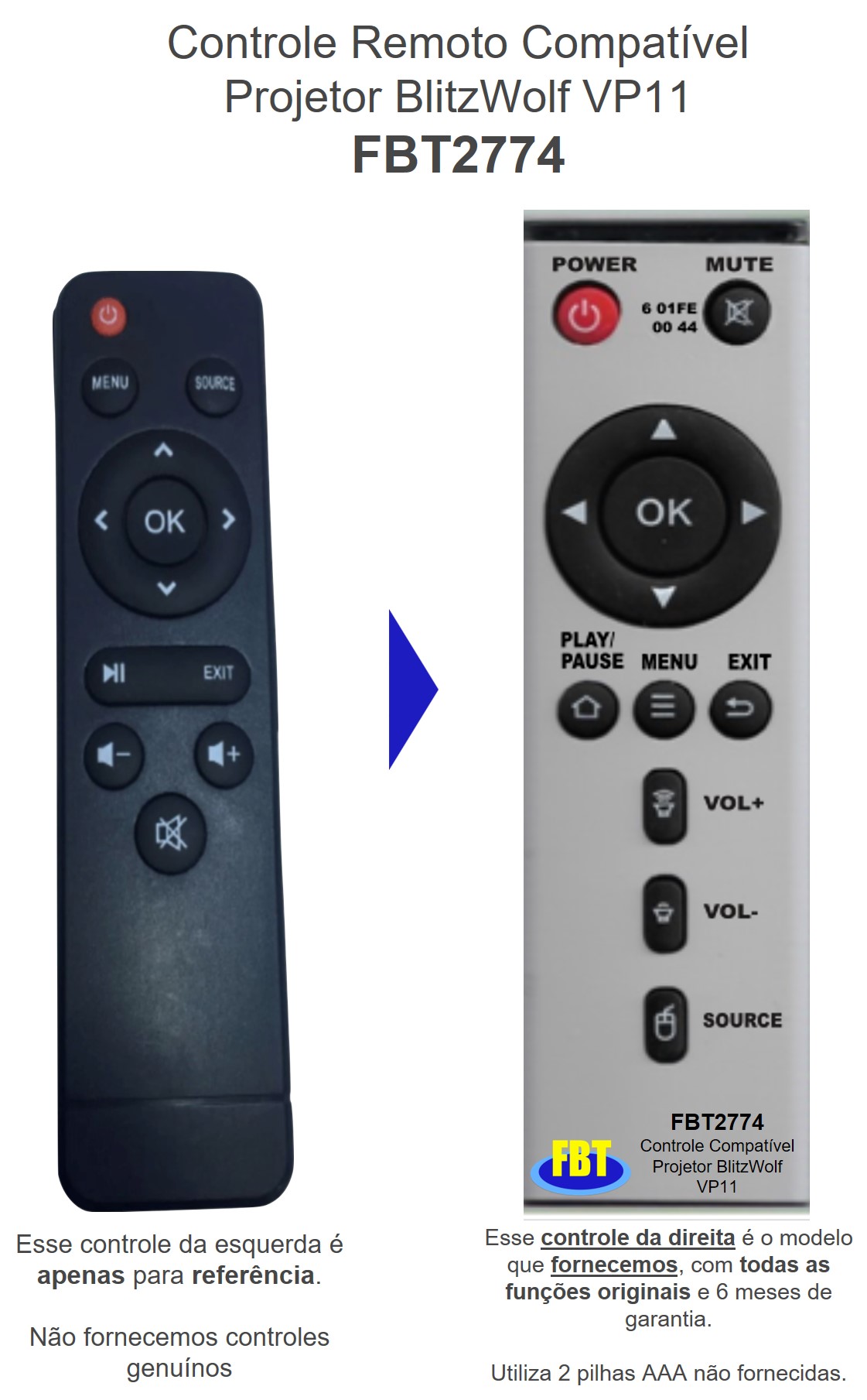 Controle Compatível Com BLITZWOLF PROJ VP15 FBT2774