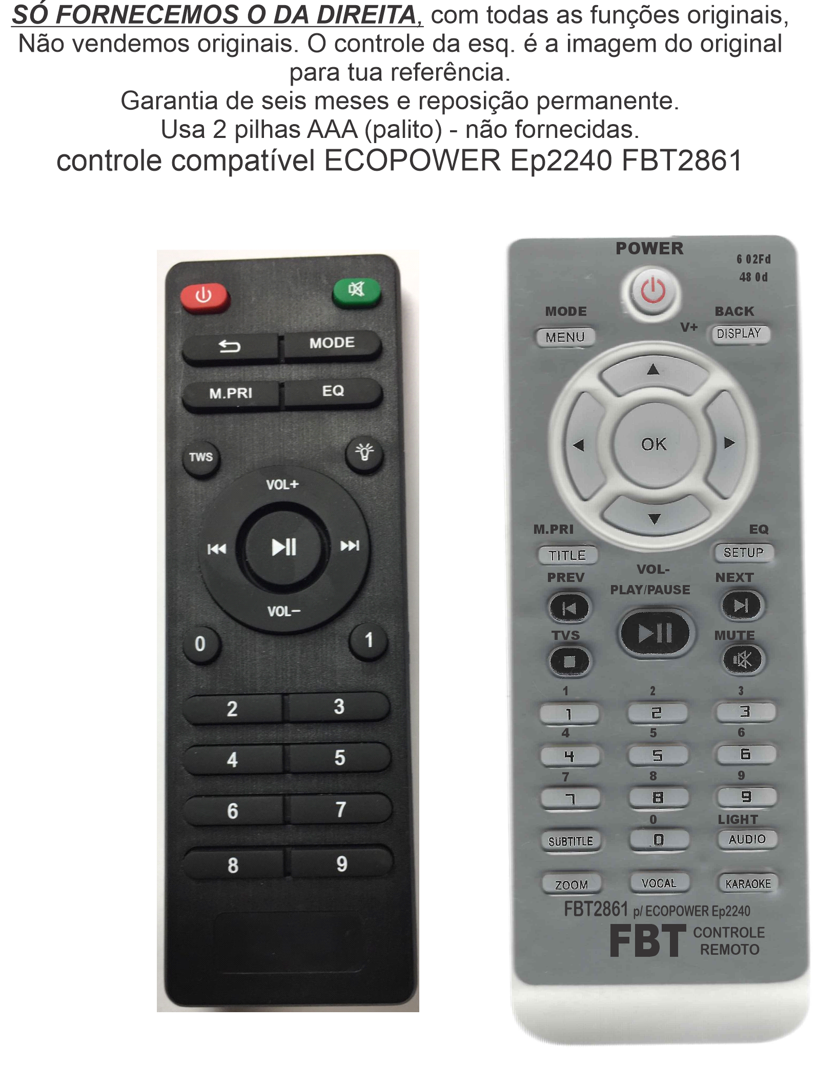 Garantia de seis meses, e reposição permanente. Nós o fabricamos. Se não achou o teu em nossos anúncios, e ainda tem o original defeituoso, nos contate pelo zap 11 98428 5221 ou pelo email fbtControleremoto@gmail.com, e combinamos a compatibilização do teu Controle.