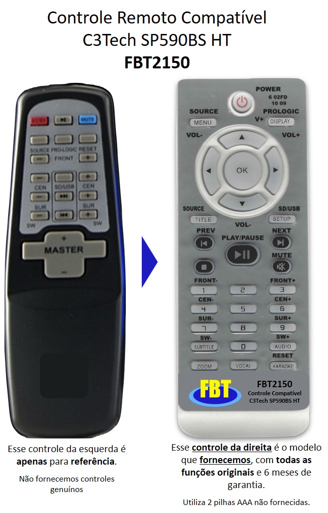 Controle Compatível Com Home Theater C3tech Sp 590bs FBT2150