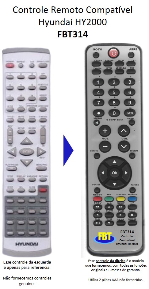 Controle REMOTO Compatível E COM GARANTIA Nós vendemos e produzimos os Controles remotos compatíveis com visual diferente, totalmente funcional e com 6 meses de garantia e reposição permanente. Não vendemos Controles originais MAIS DE 15 ANOS DE EXPERIÊNCIA Temos mais de 15 anos de experiência e somos referência no mercado de Controle remoto com mais de 2000 Controle remotos e também temos loja física. FRETE Informe o seu CEP em “CALCULAR FRETE POR MercadoEnvios” e saberá o valor a pagar junto com o produto. Pelo convênio com os Correios e outras transportadoras, todas as modalidades são mais baratas, e vc também pode optar pelo EXPRESSO, mais barato que o SEDEX. *DICA Observe que muitas marcas e modelos utilizam o mesmo Controle remoto, mudando a cor do painel e a marca, preste atenção no formato, nas teclas, se são iguais em funções e em suas posições ao teu original, dessa forma facilita na busca do teu Controle remoto. Muito obrigado e aguardamos a sua compra.