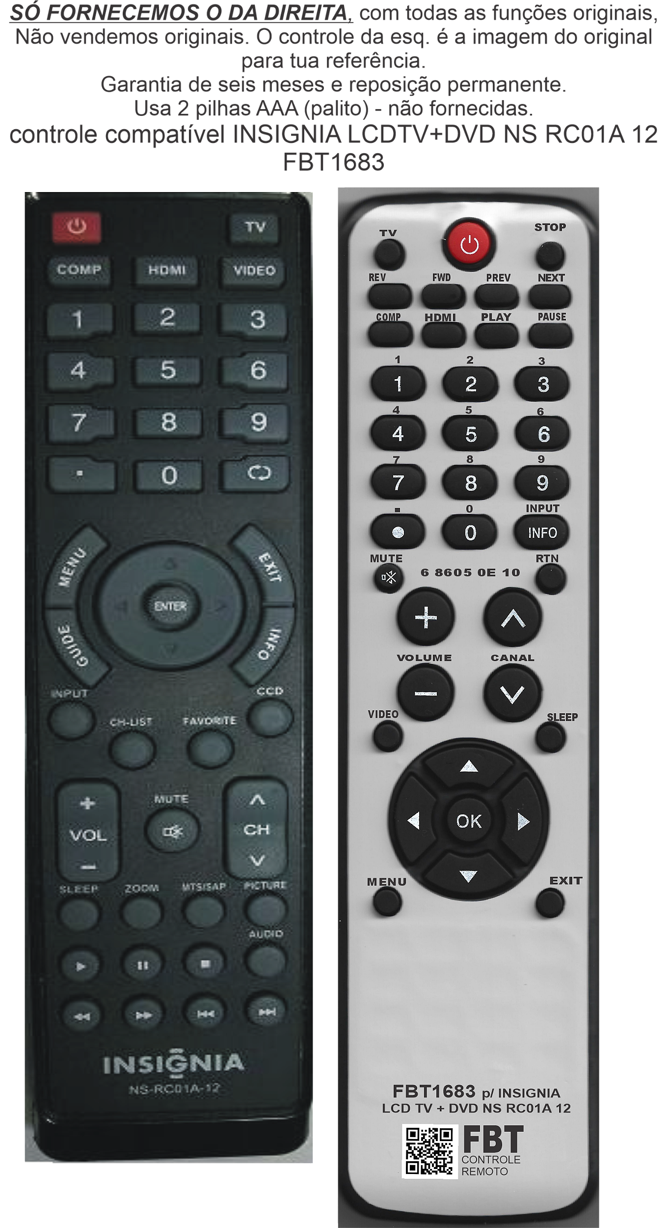 Controle Compatível Com INSIGNIA LCDTV+DVD NS RC01A 12 FBT1683