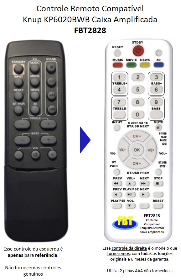 Controle Compatível Com KNUP CX AMP KP6020BWB FBT2828