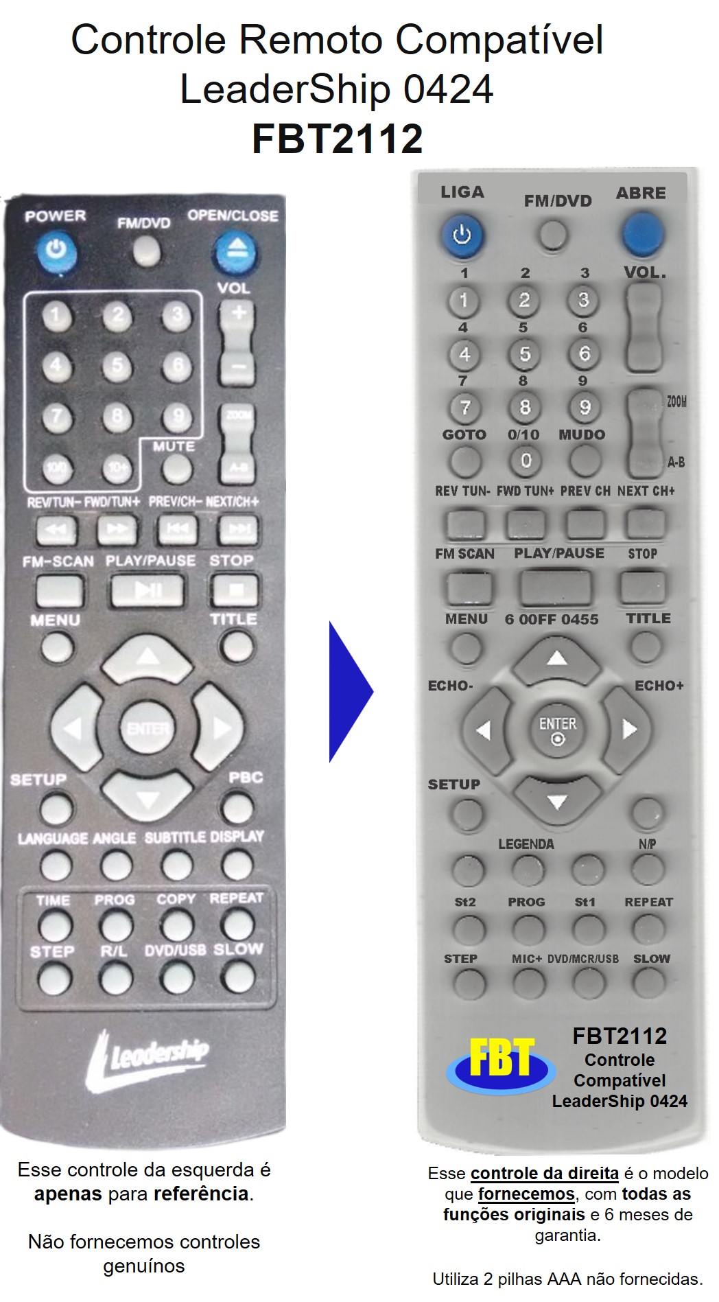Controle Compatível Com Leadership Ht Dvd 10 FBT2112