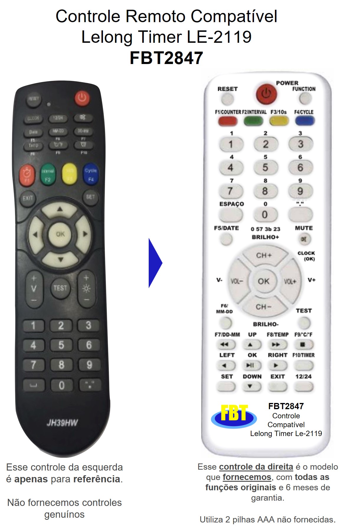 Controle Compatível LELONG TABATA TIMER LE2119 FBT2847