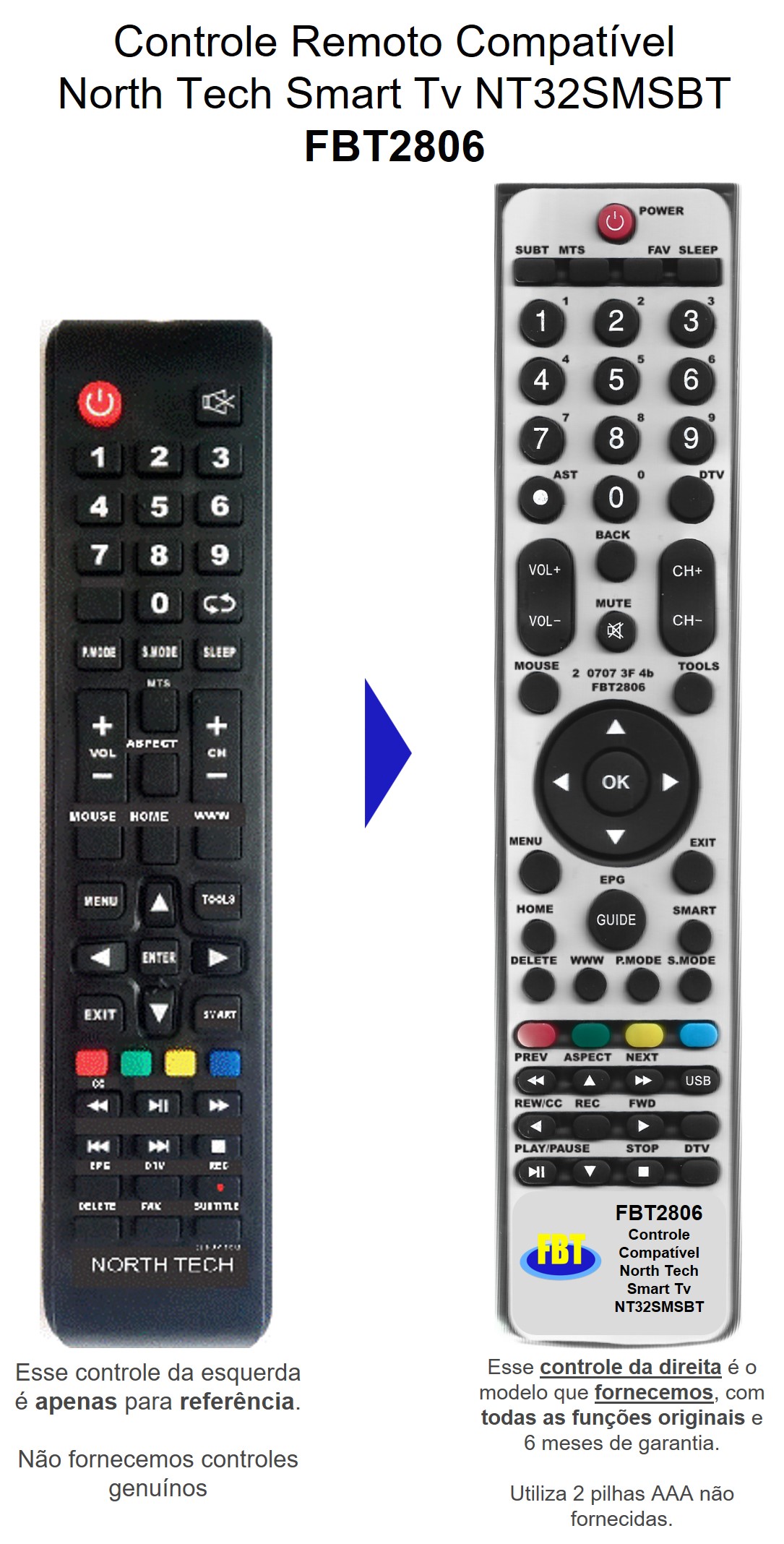 Controle Compatível Com NORTH TECH 32LCD NT32SMSBT FBT2806