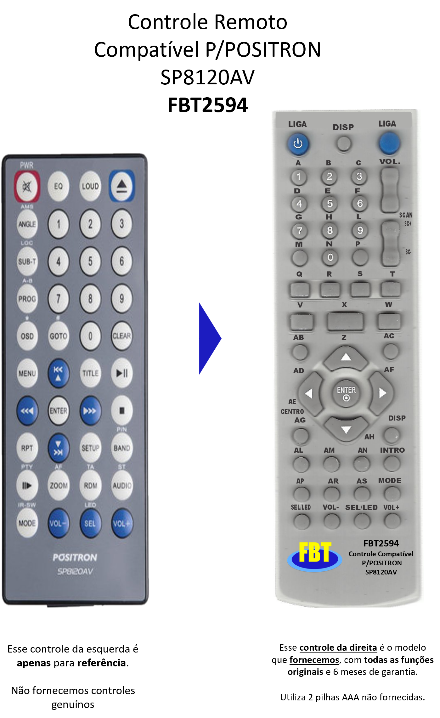 Controle Compatível Com POSITRON SP8120AV MULTIMIDIA FBT2594