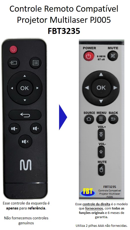 Controle Compatível Com Projetor Multilaser Pj005 Fbt3235