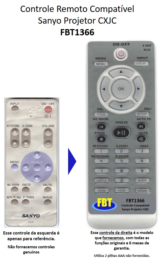 Fornecemos apenas o controle compatível (controle remoto que está a direita da imagem).