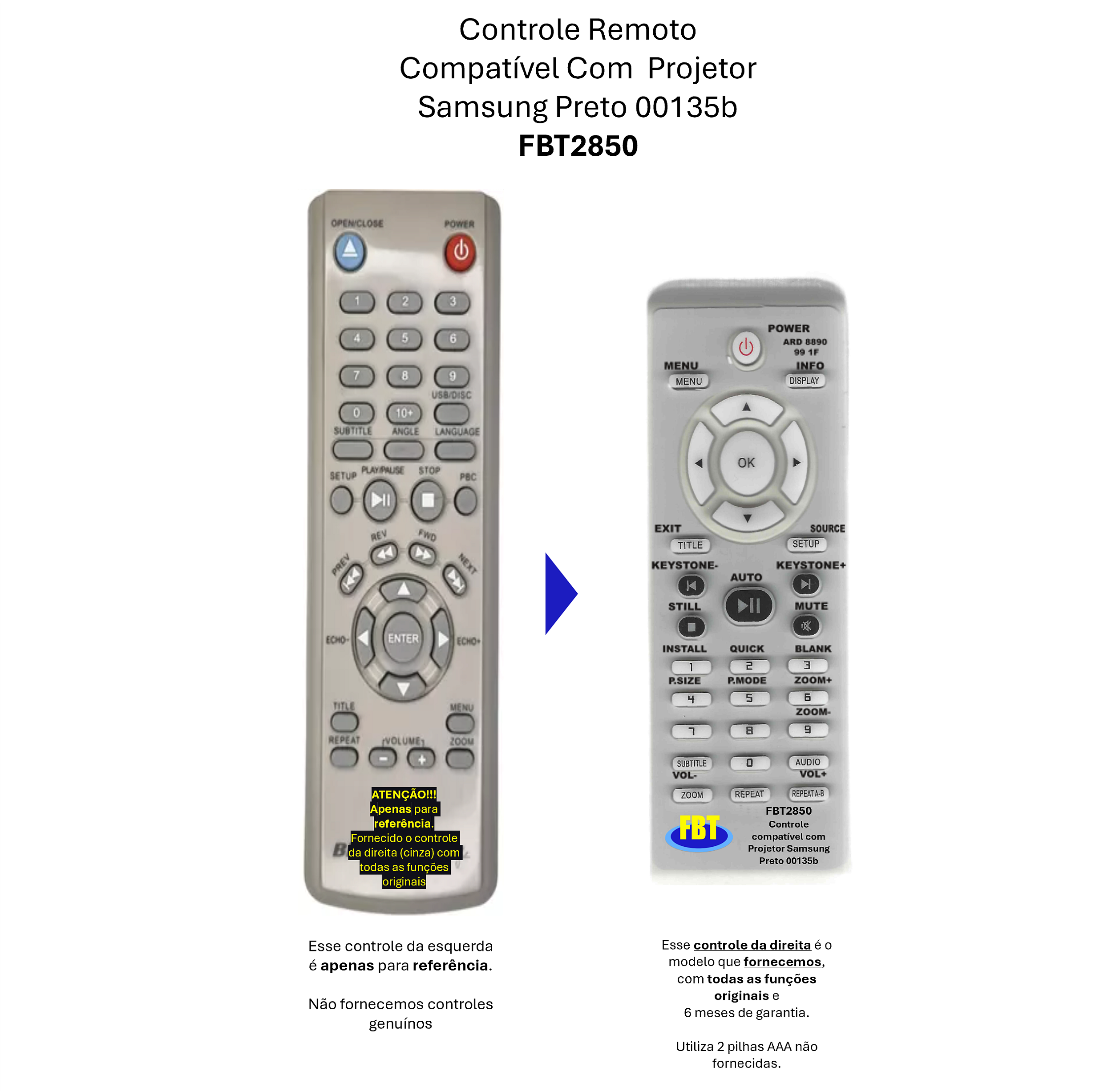 Controle Compatível Com Projetor Samsung BP59- 00135B FBT2850