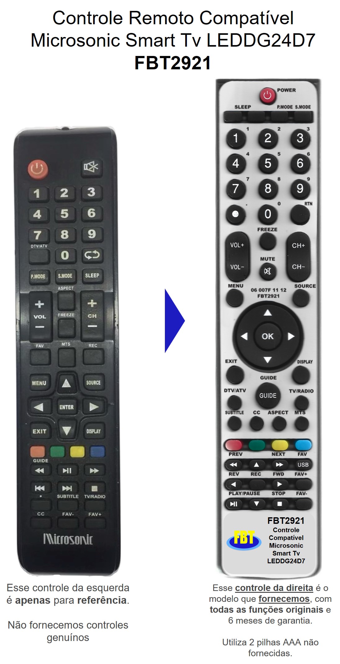 Controle Compatível Com SMART MICROSONIC LEDG24D7 TV LED24 FBT2921