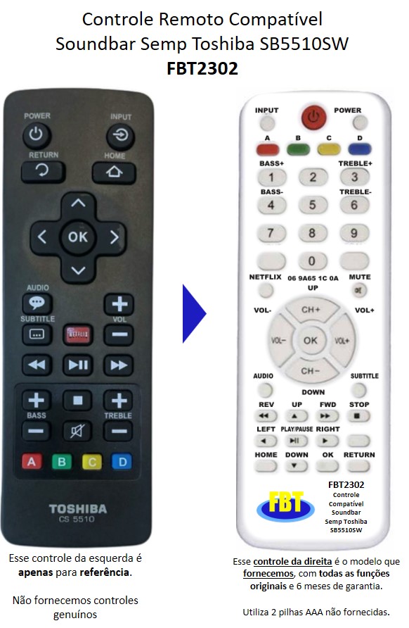Controle Compativel Com TOSHIBA SOUNDBAR SB5510 FBT2764