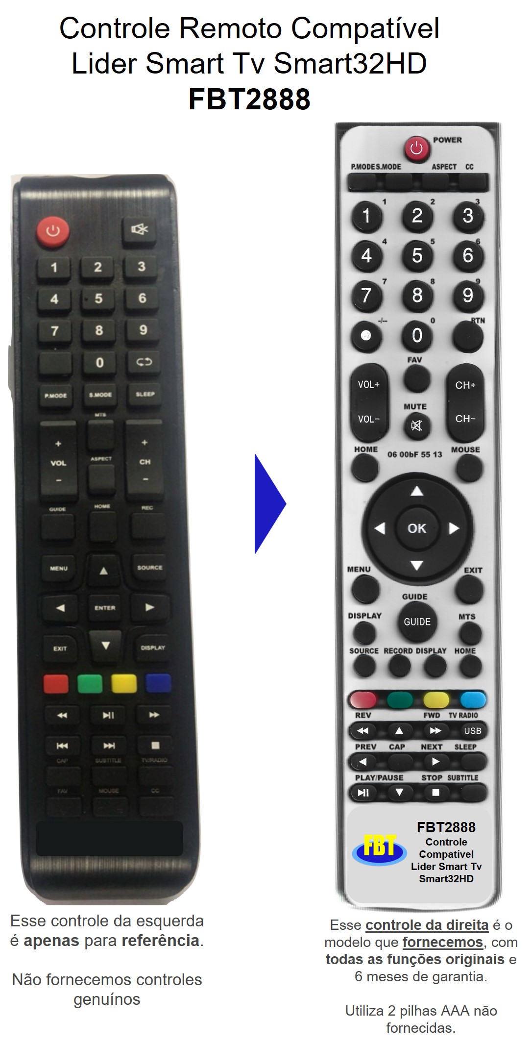 Compatibilidade com os seguintes modelos: TV LIDER SMART32HD