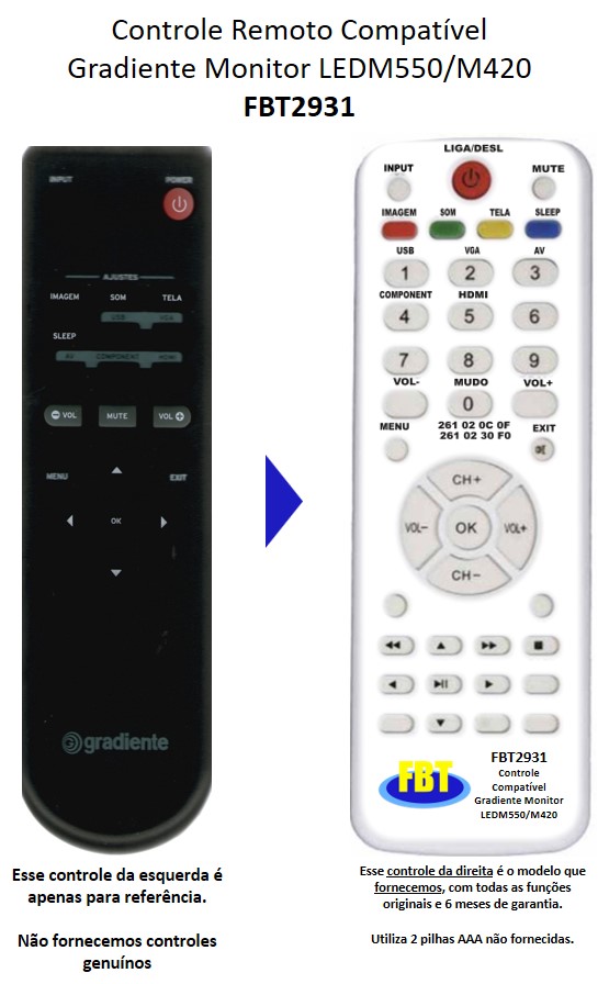 Controle Compatível Com TV MONITOR GRADIENTE LED Full HD M550-FHD/ M420-FHD FBT2931