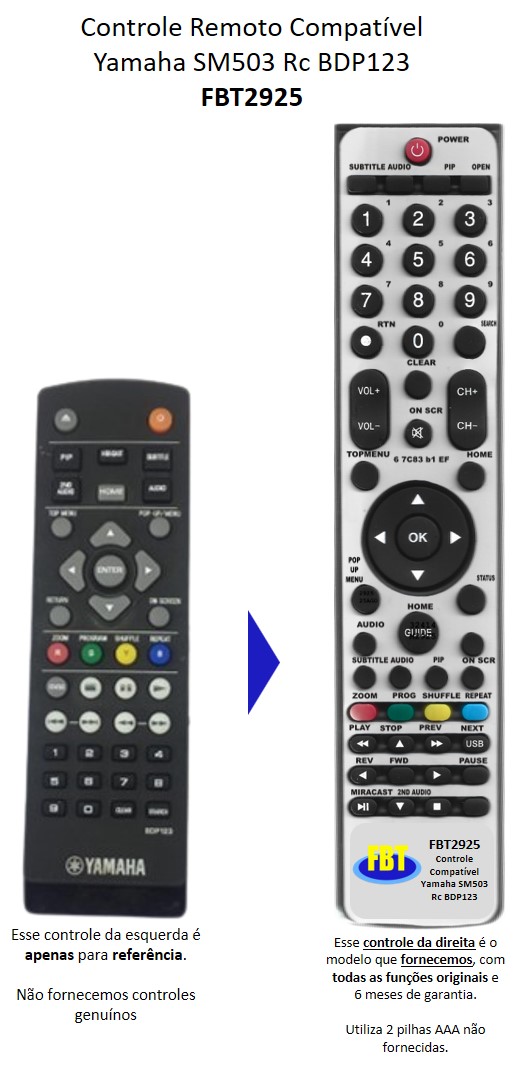 Controle Compatível Com Yamaha BDP123 FBT2925
