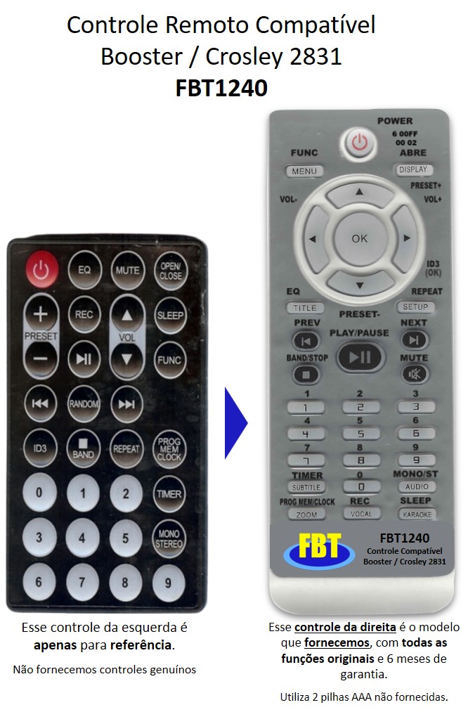 Controle Remoto Compatível Crosley Vitrola FBT1240