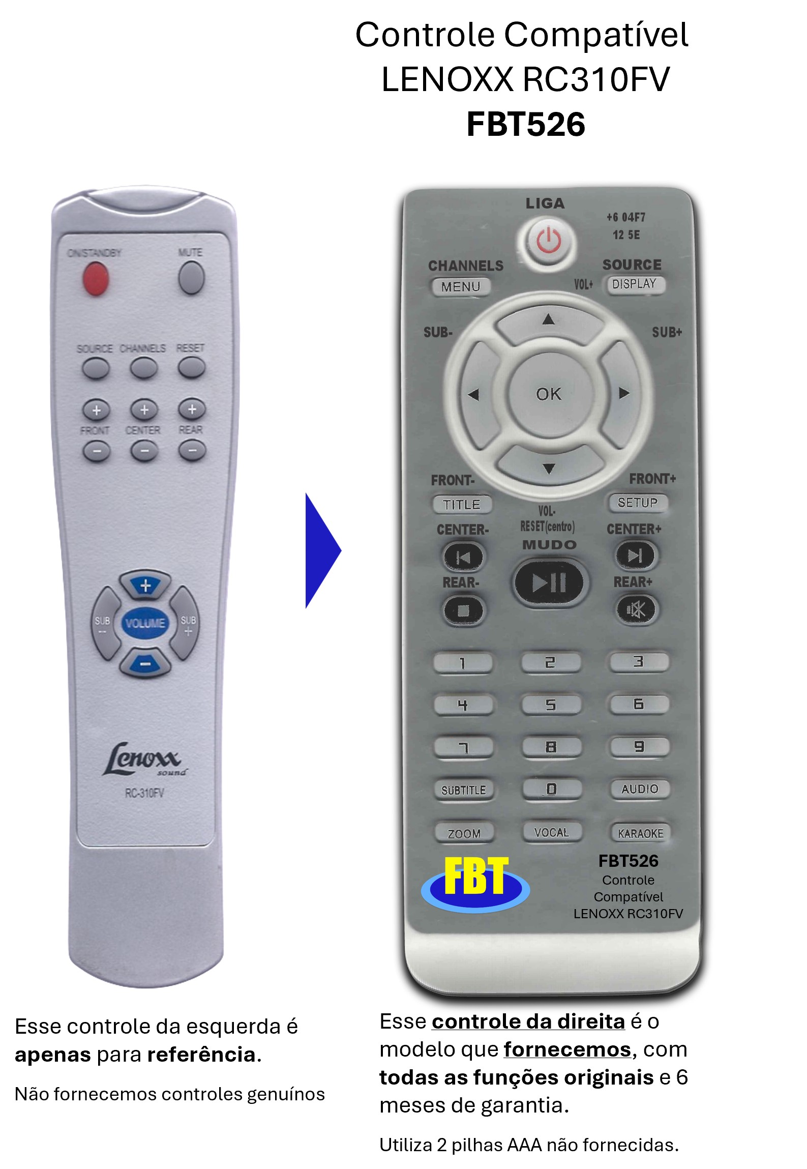 Controle Compatível Home Lenoxx Ht310 Rc310 Fv Fbt 526