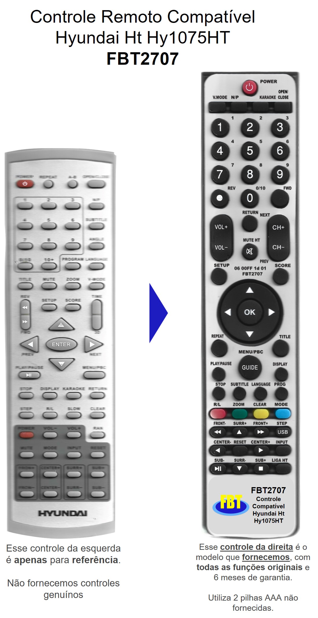 PARA HOME HYUNDAI HY1075, OBSERVAR SE O ORIGINAL TEM O LIGA DO HOME, NA PARTE DE BAIXO, DO LADO ESQUERDO. PORÉM SE ESTIVER DO LADO DIREITO, O Controle É O FBT422