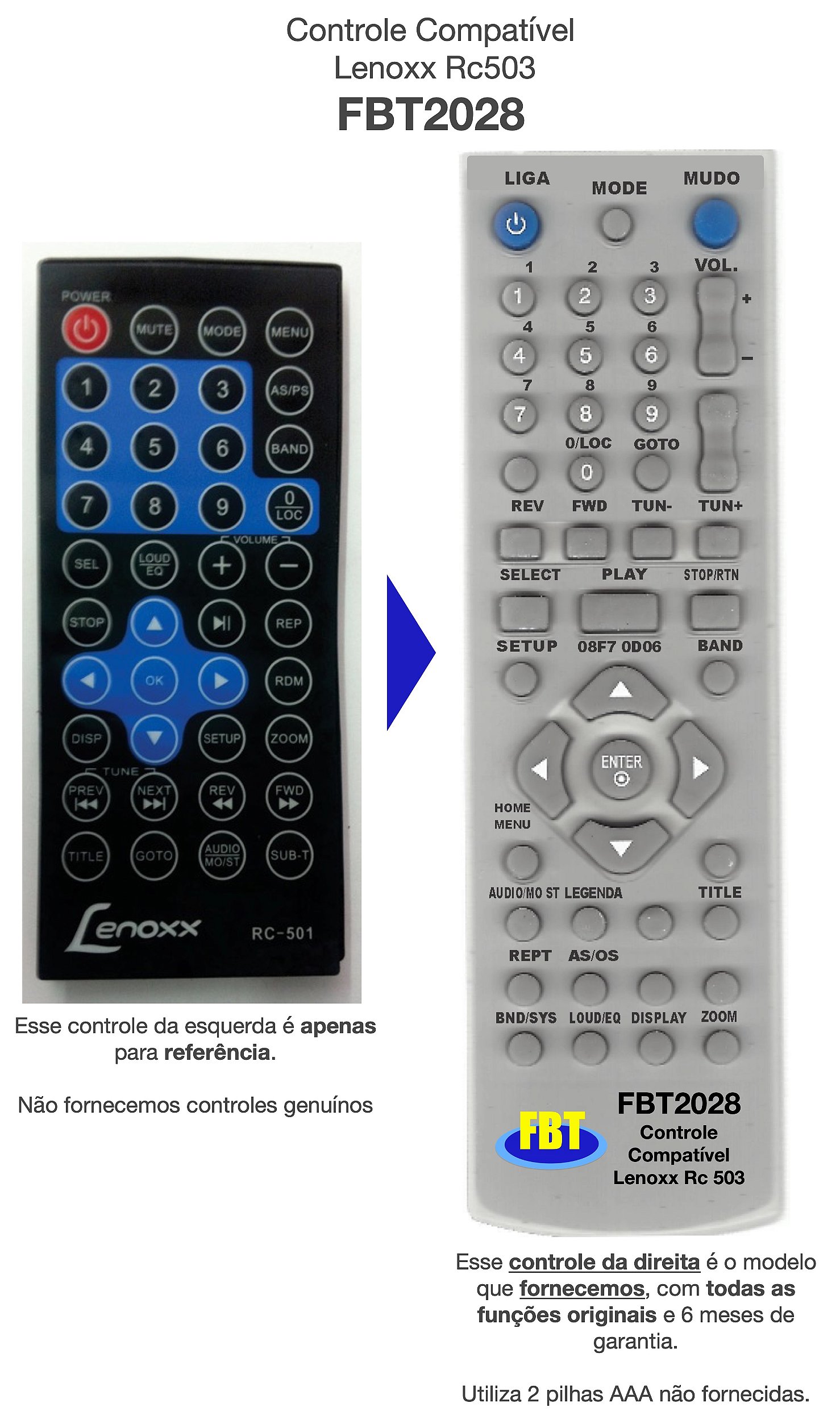 Controle Compatível Lenoxx Automotivo Rc503 Rc501 FBT2028