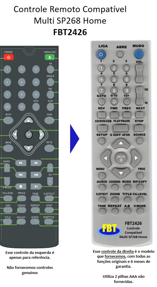Controle Compativel Multilaser Sp268 Home FBT2426