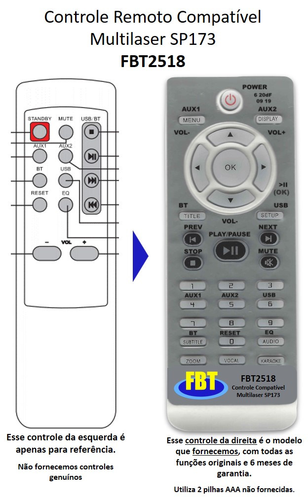 Controle Compatível Multilaser Sp173 Fbt2518