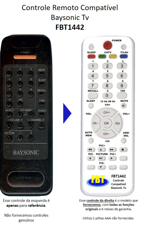 Controle Compatível P/ BAYSONIC TV FBT1442