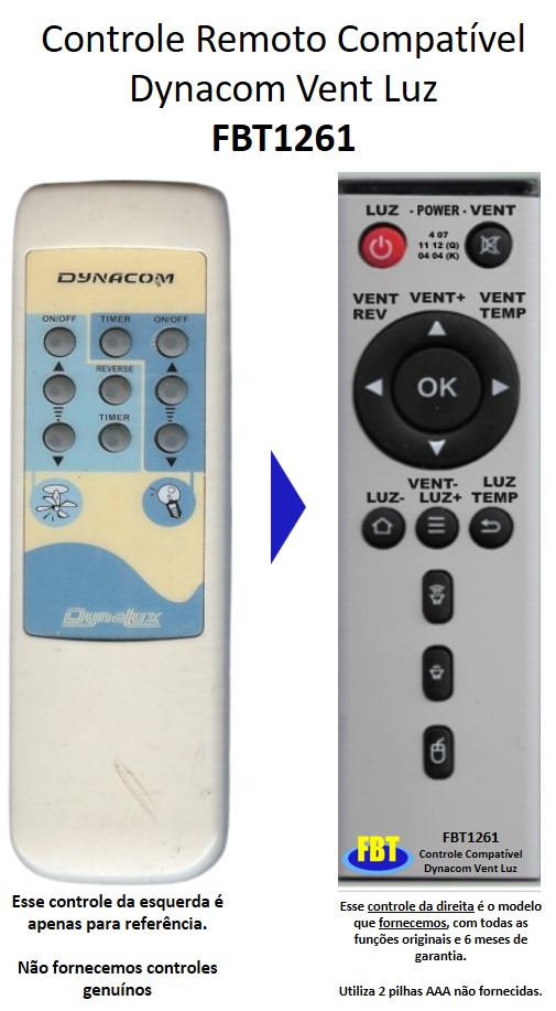Controle Compatível P/ DYNACOM FBT1261