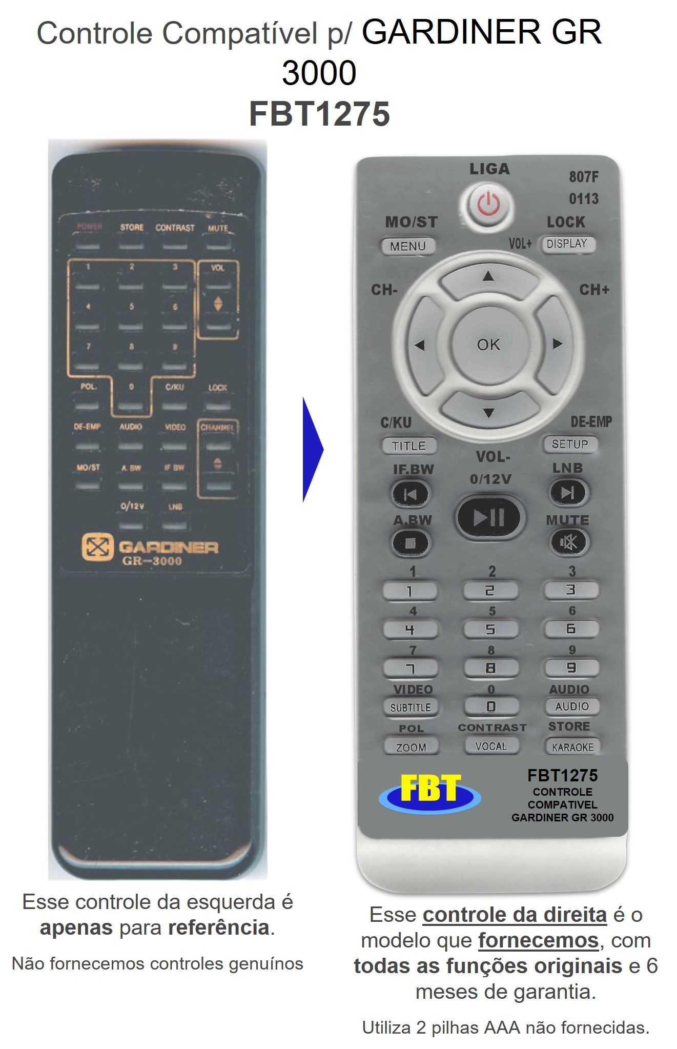 Controle Compatível P/ GARDINER GR 3000 FBT1275
