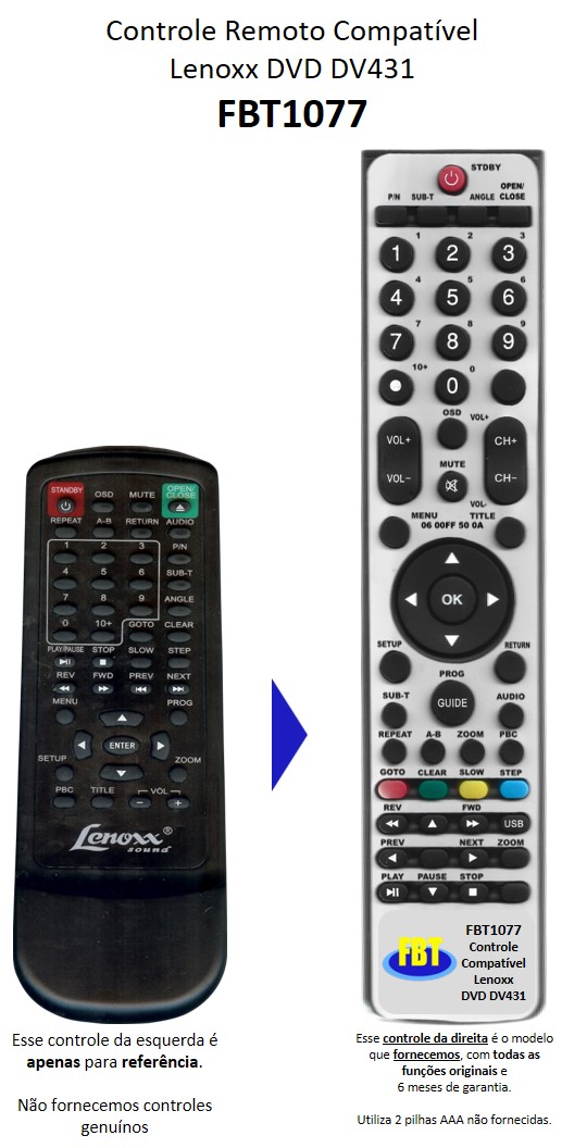 Controle Compatível P/ Lenoxx DVD DV431 FBT1077