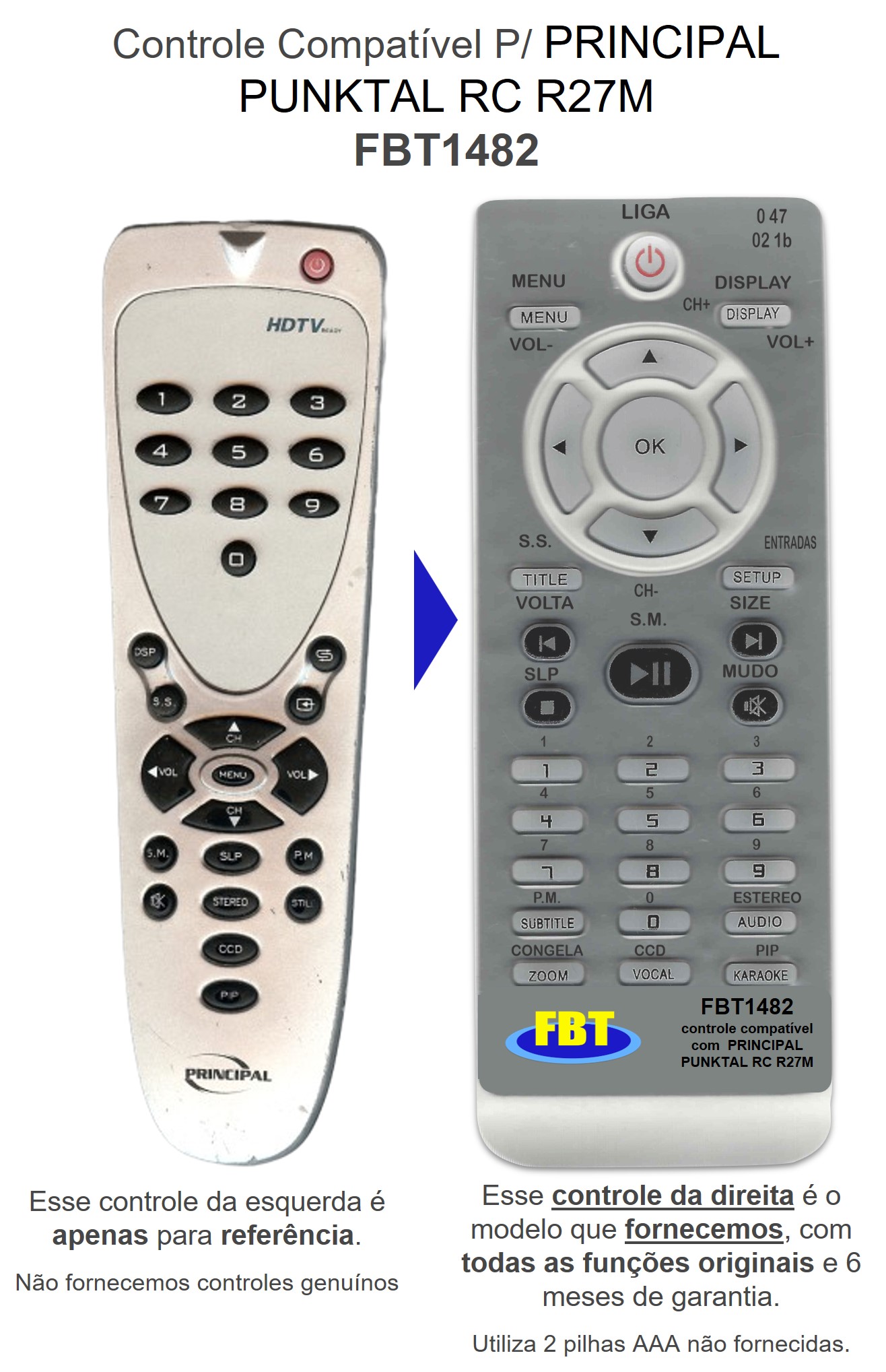 Controle Compatível P/ PRINCIPAL PUNKTAL RC R27M FBT1482