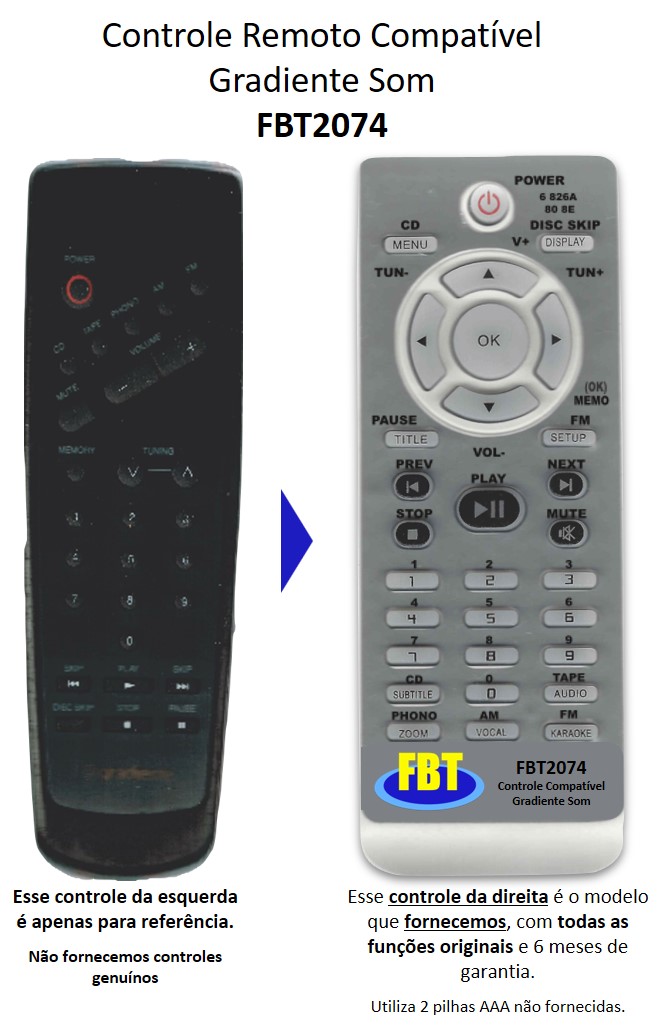 Controle Compatível para aparelho de som Gradiente AT70 AT80 FBT2074