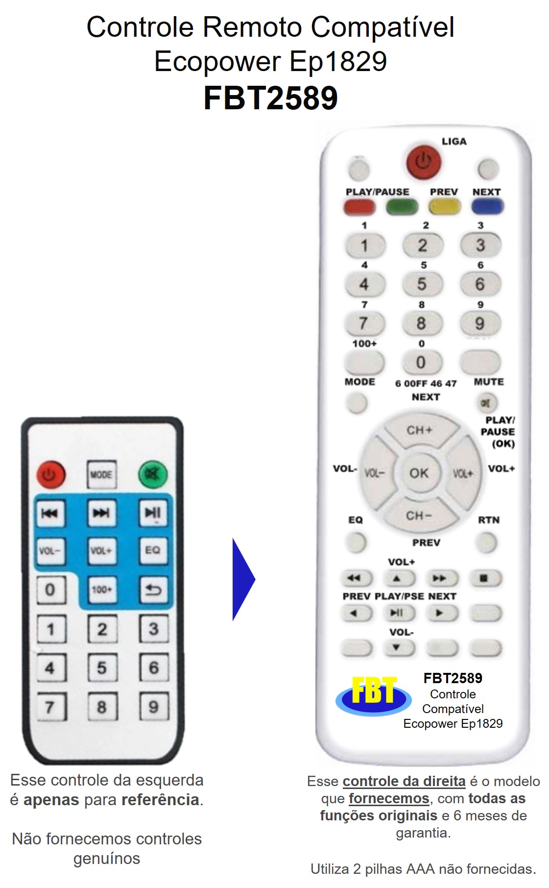 Controle Compatível para Caixa Amplificada EcoPower EP1829 FBT2589