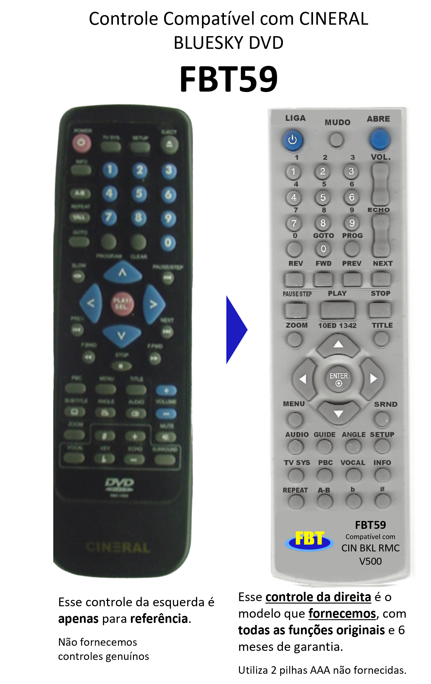 Controle Compatível Para Cineral Bluesky Dvdk1232 1240 Fbt59