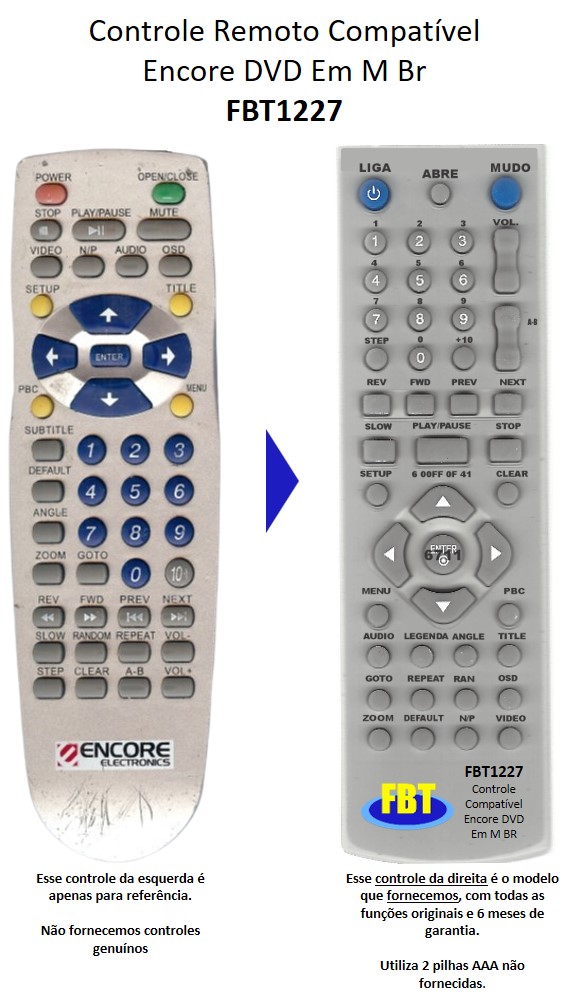 Controle Compatível para DVD Encore Electronics 11 FBT1227
