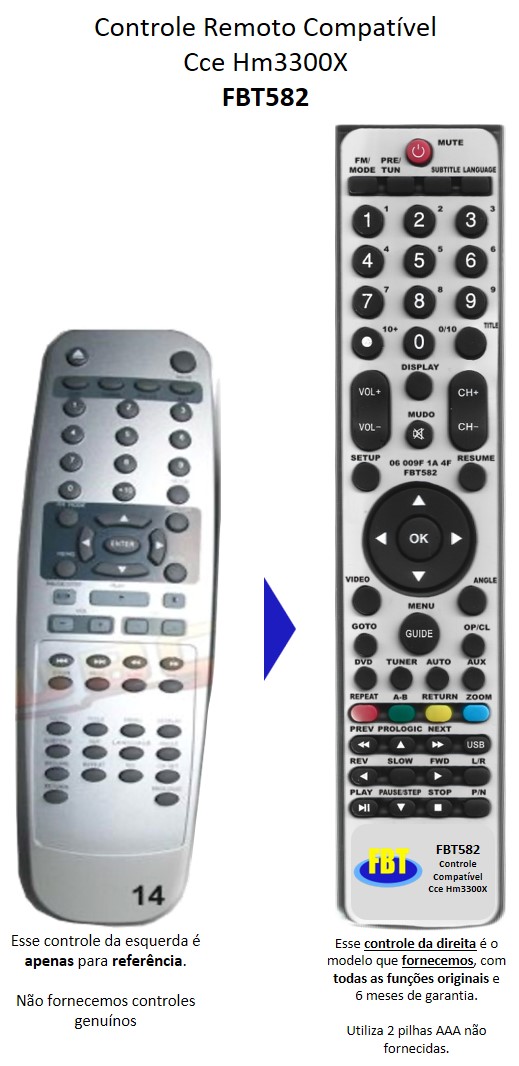 Controle Compatível para HT Home CCE HM-3300X FBT582