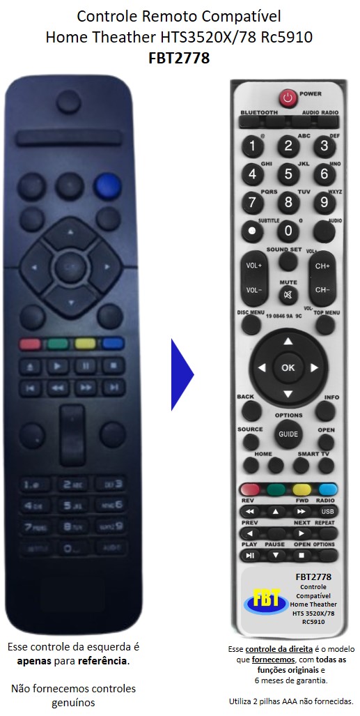 Controle Compatível Para PHILIPS HOME HTS3520X/78 3510 FBT2778