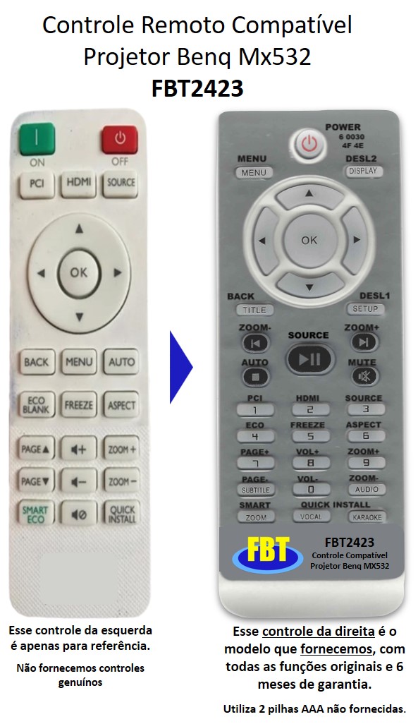 Controle Compatível para Projetor Benq Mx532 FBT2423