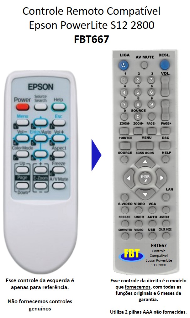 Controle Compatível para Projetor Epson S3 S4 EMP FBT667