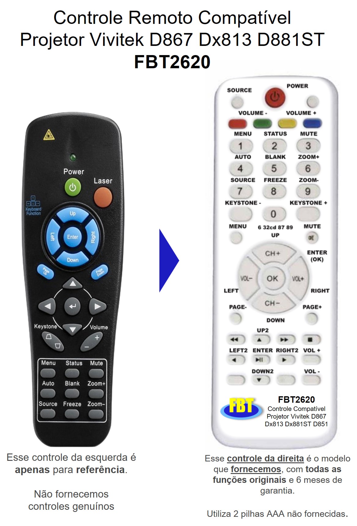 Controle Compatível para Projetor Vivitek D867 Dx813 Dx881ST D851 FBT2620