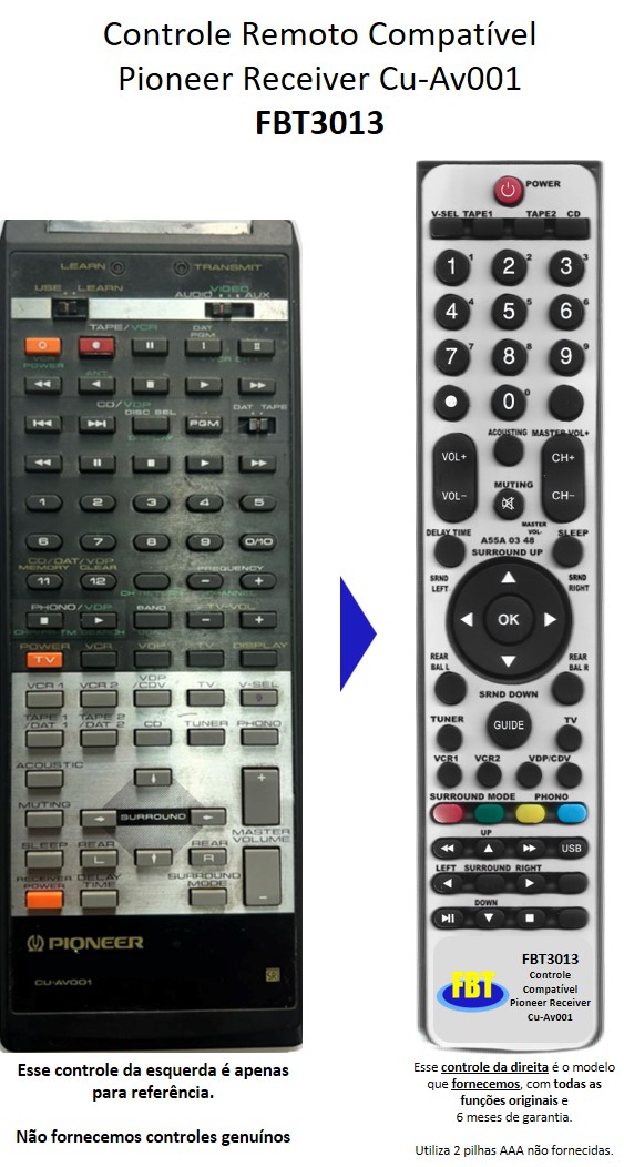 Controle Compatível Pioneer Receiver Cu-Av001 FBT3013