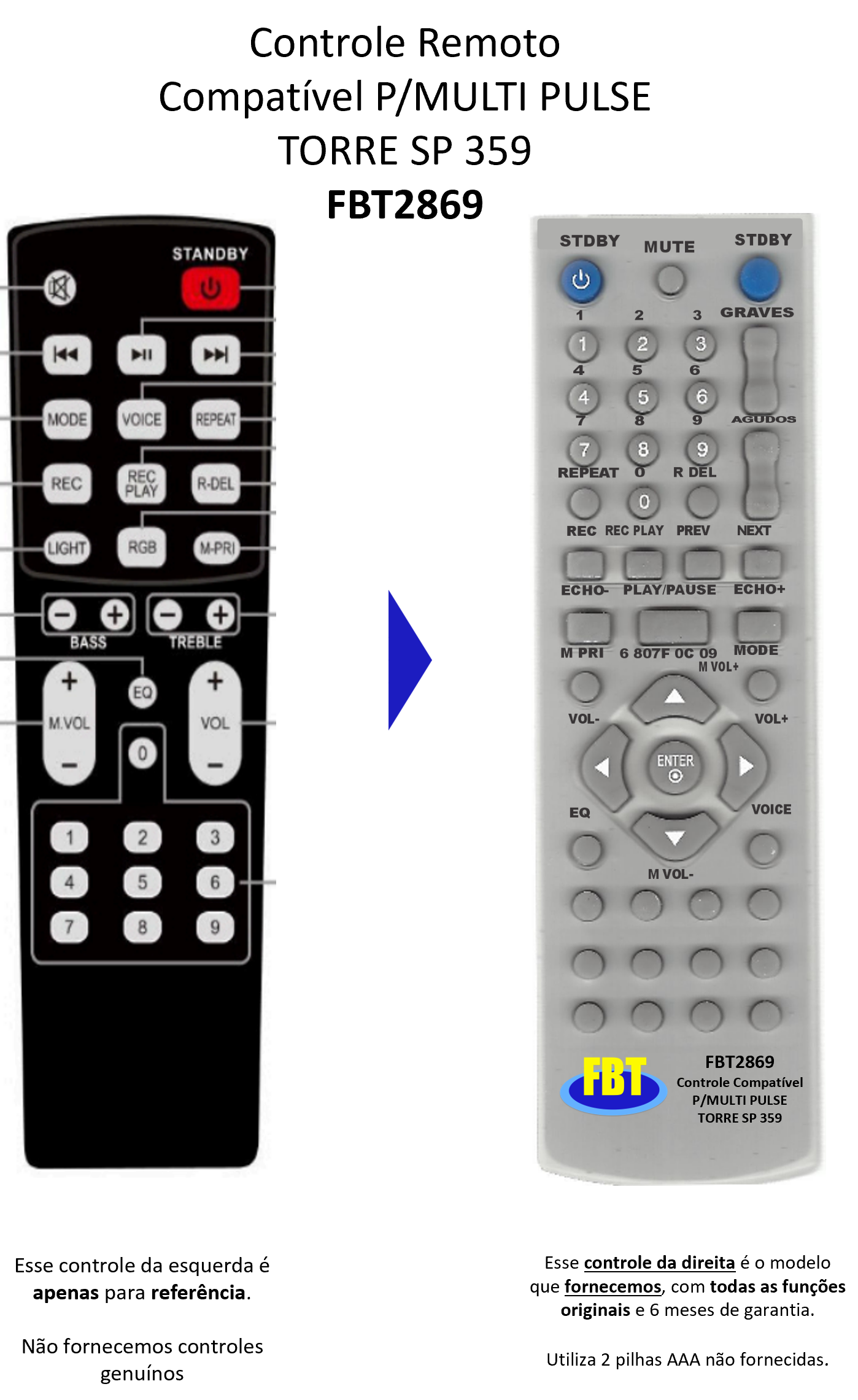 Controle Compatível P/MULTI PULSE TORRE SP 359 FBT2869