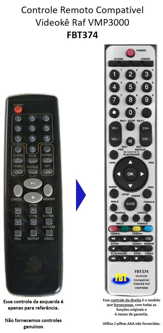 Controle Remoto Compatível RAF Videokê Vmp 3000 FBT374