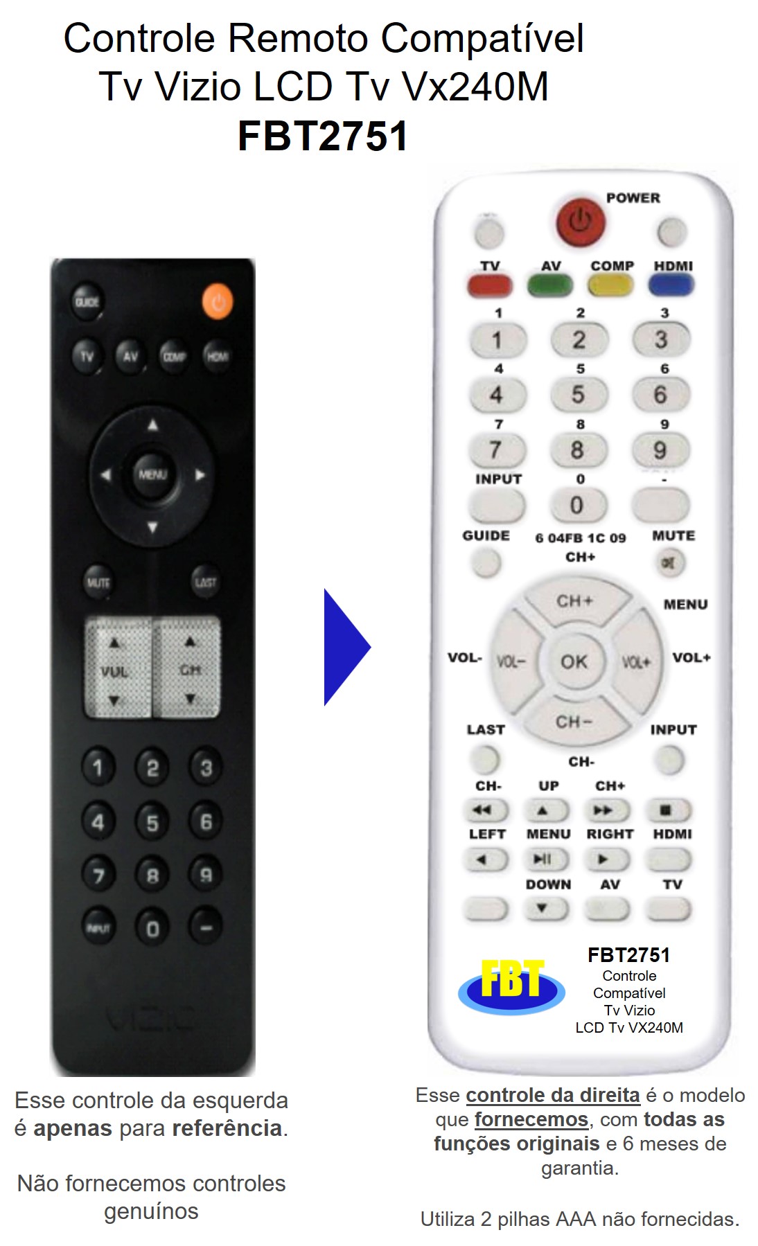 Controle Compatível VIZIO LCDTV VX240M FBT2751