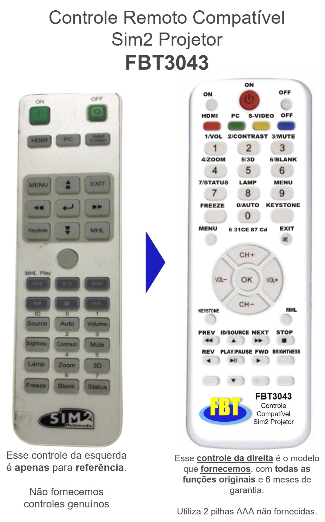 Controle Remoto Compatível SIM2 SUPERCUBE-WG FBT3043