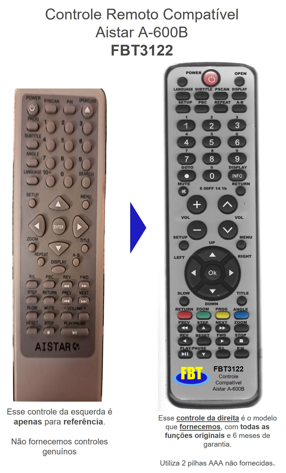 Controle Remoto Compatível Aistar A-600B FBT3122