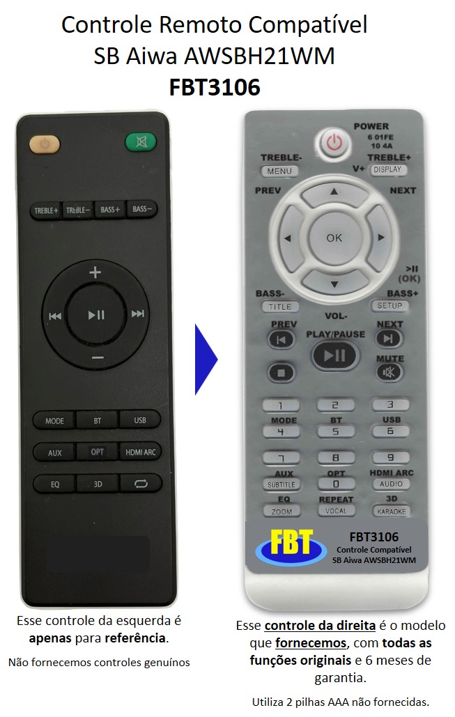 Controle Remoto Compatível Aiwa SoundBar AWSBH21WW FBT3106
