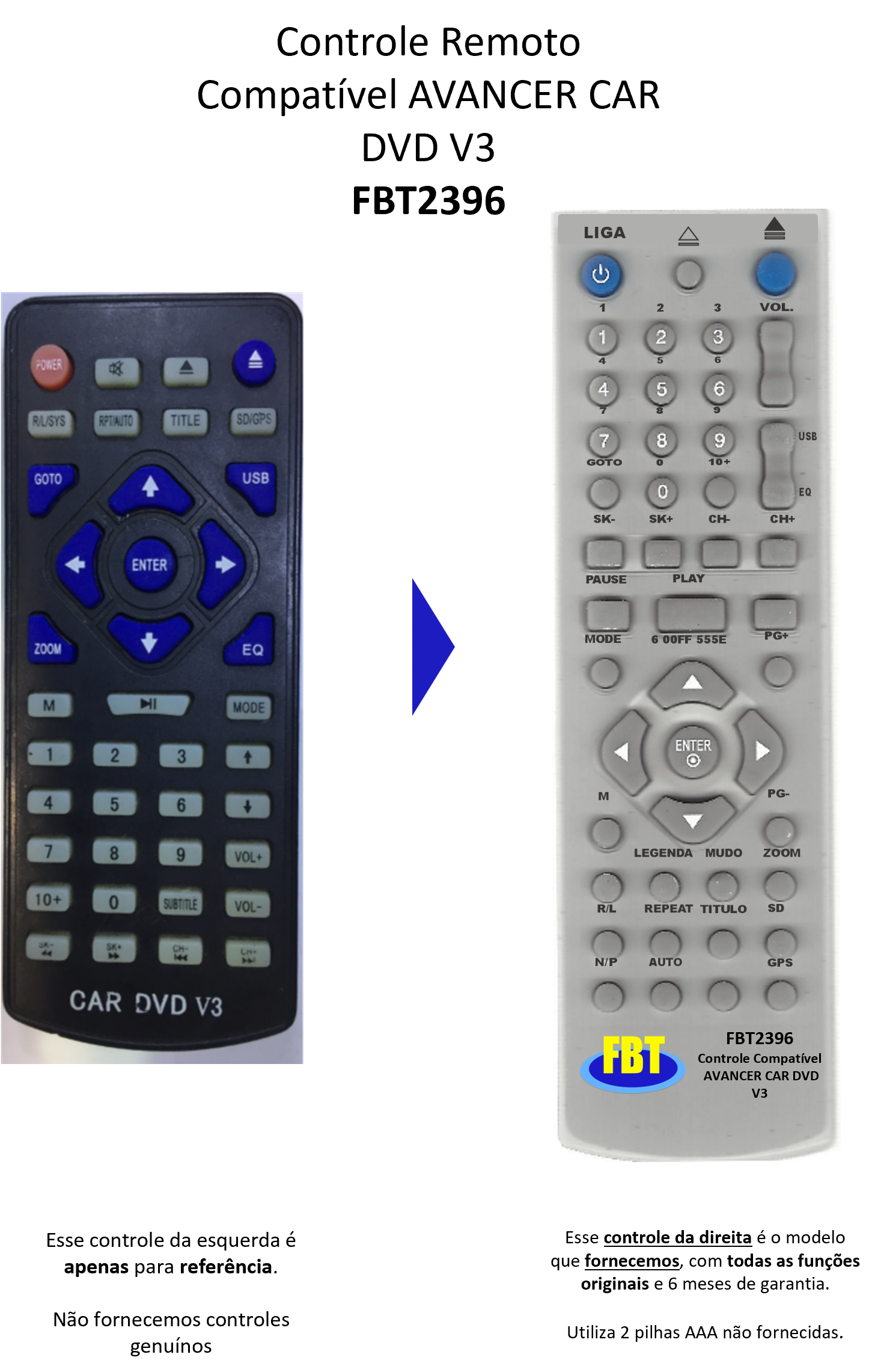 Controle Remoto Compatível AVANCER CAR DVD V3 FBT2396