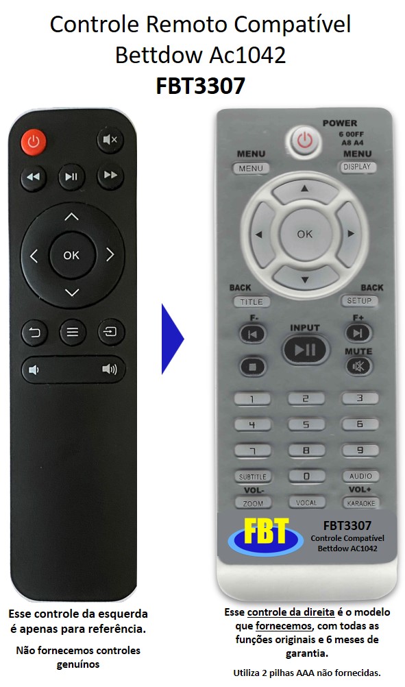 Fornecemos apenas o controle compatível (controle remoto que está a direita da imagem).
