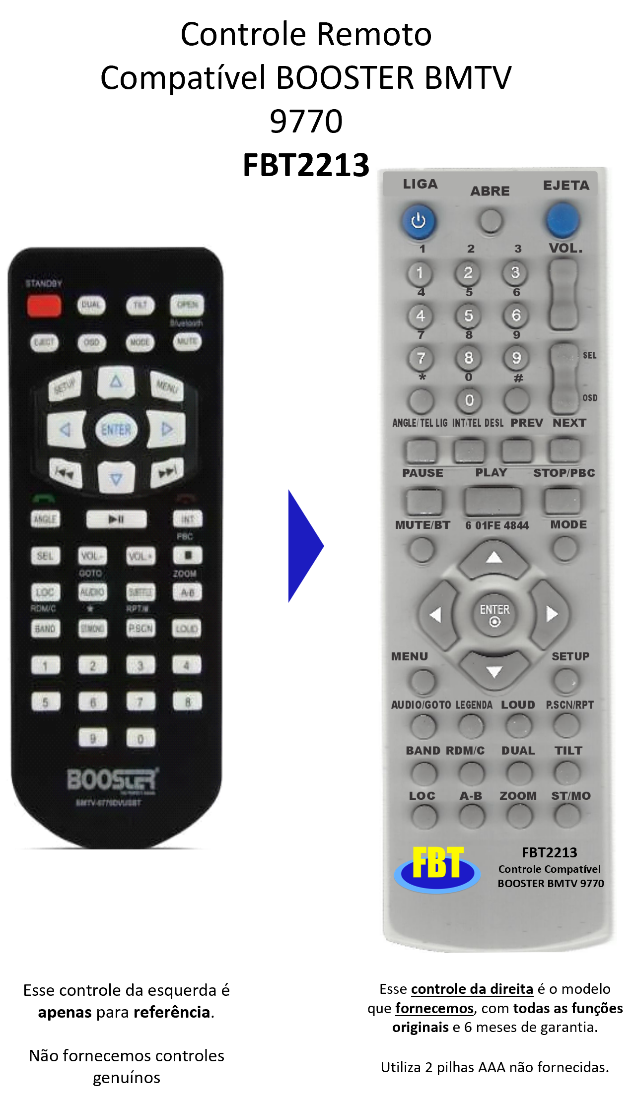 Controle Remoto Compatível BOOSTER BMTV 9770 FBT2213
